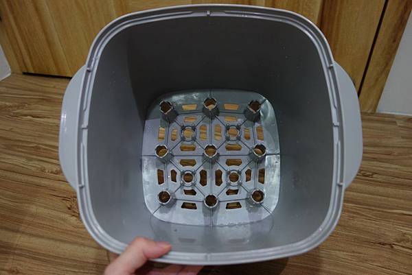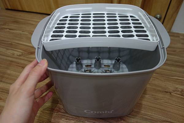 因為我從0個月開始使用,使用時間比較長,盛水盤已太髒,不敢拿來嚇人😭所以就拿上一代的消毒烘乾鍋來圖示一下。